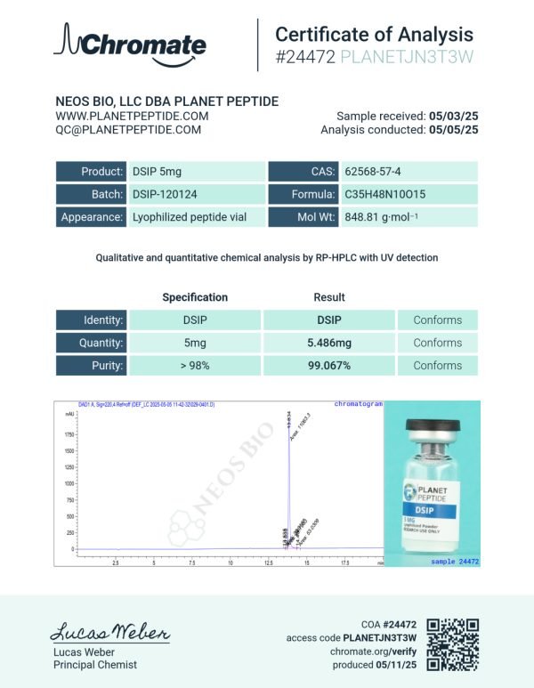 DSIP is an oligopeptide that contains nine amino acid residues. Our DSIP 10MG is meticulously processed to ensure maximum integrity and stability, undergoing rigorous third-party testing to guarantee purity. This makes it a reliable choice for advanced scientific research and development.