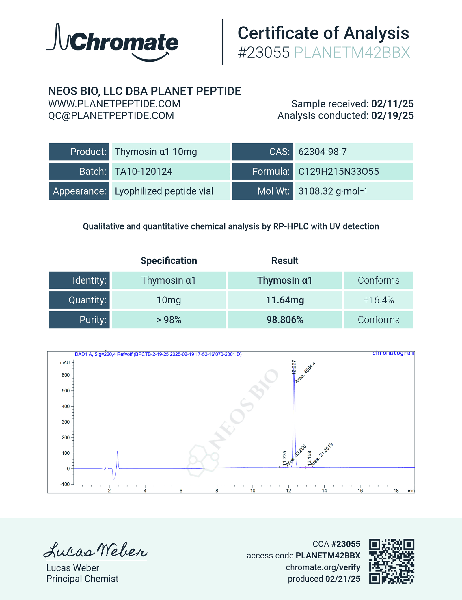 Our Thymosin Aplha-1 is meticulously processed to ensure maximum integrity and stability, undergoing rigorous third-party testing to guarantee purity. This makes it a reliable choice for advanced scientific research and development.